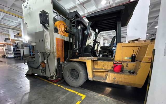 Rút ruột Container hàng quá khổ: Với các kiện máy đóng trong Container Flat Rack hoặc Open Top nhưng không thể dùng cẩu (do vướng mái kho), xe nâng hạng nặng là lựa chọn duy nhất để rút hàng ra ngoài.
